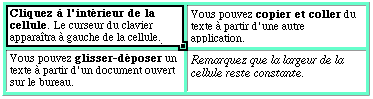 N.B.: la case Espacement permet d'augmenter ou de diminuer l'espace entre les cellules.